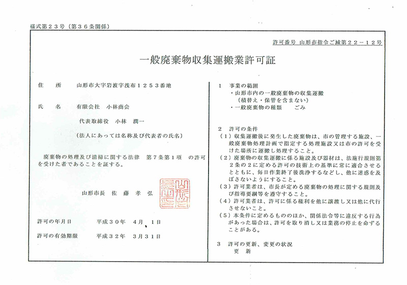 排出事業者様の産業廃棄物の適正処理、事務処理の効率化を図る為、小林商会では電子マニフェスト「JWNET」に加入しております。